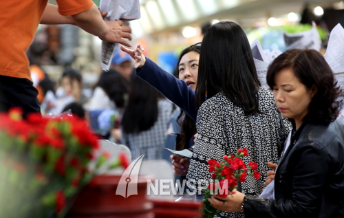 [뉴스핌=김학선 기자] 어버이날을 하루 앞둔 7일 서울 반포동 고속버스터미널 내 꽃시장에서 시민들이 부모님께 드릴 카네이션을 사고 있다.