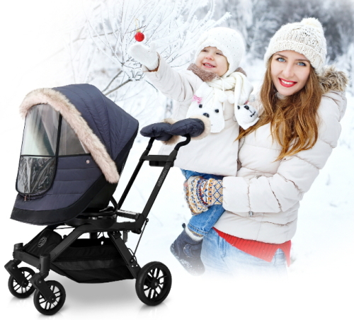 주행자를 위해 장착된 보온성 높은 핸드머프는 찬 공기와 외부 자극으로부터 손을 보호해줘 겨울철 장시간 야외활동에도 끄떡 없다. 이 제품은 오르빗베이비의 디럭스형 유모차 ‘G2’와 ‘G3’에 모두 호환이 가능하다.