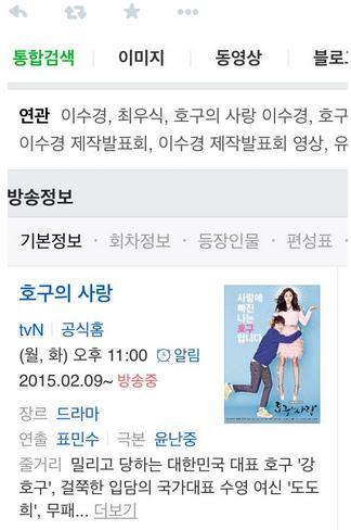 이어 리지는 한 포털사이트에서 '호구의 사랑'을 검색한 후 관련 정보를 캡처한 이미지를 함께 게재했다.