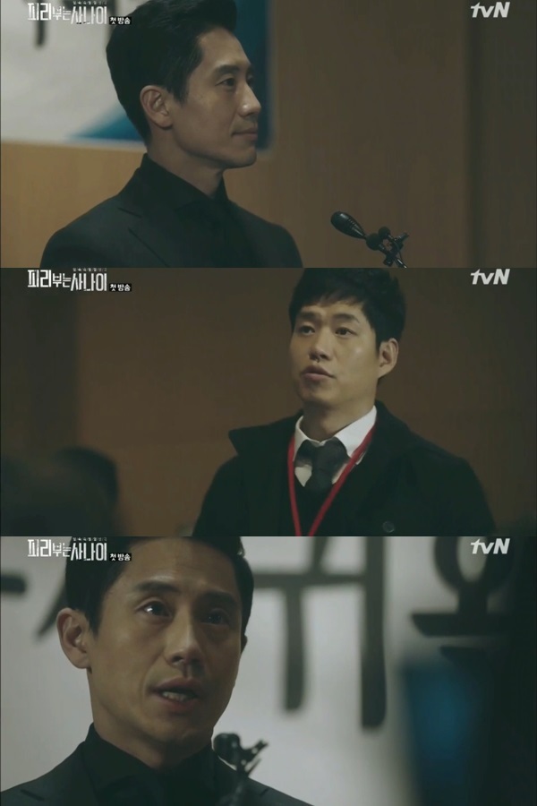 | '피리부는 사나이' 유준상이 신하균과 날선 신경전을 벌였다. <사진=tvN '피리부는 사나이' 방송 캡처> |