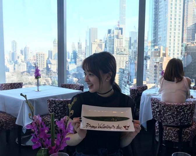 손연재가 올린 사진 속에는 '해피 밸런타인 데이♥_♥'라고 적힌 접시가 담겨 있다. 해외 레스토랑으로 보이는 곳에서 손연재는 특별히 선물 받은 듯한 접시를 들고 환하게 웃고 있다.