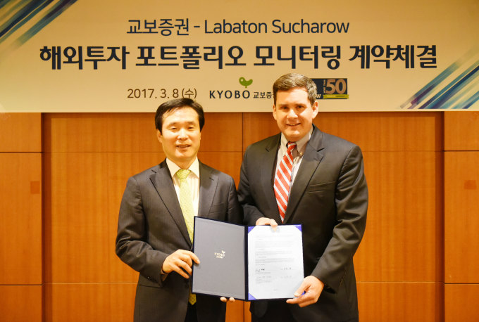 [뉴스핌=이광수 기자] 교보증권이 업계 최초로 투자포트폴리오 모니터링 계약을 체결했다. 해외투자 포트폴리오 모니터링이란 투자대상 기업들에 불법행위를 감시 및 보고 조치하여 투자자를 보호하는 서비스다.