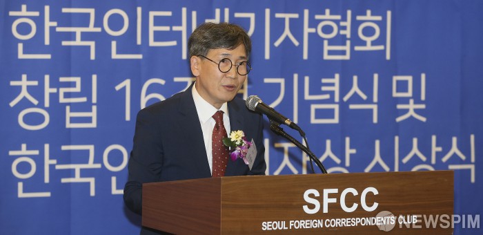 [서울=뉴스핌] 이형석 기자 = 김철관 한국인터넷기자협회장이 30일 오후 서울 중구 프레스센터에서 열린 한국인터넷기자협회 창립 16주년 기념식에서 개회사를 하고 있다. 2018.10.30 leehs@newspim.com