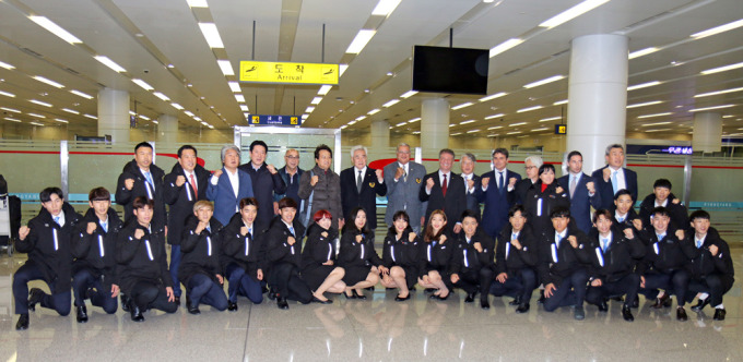 | 세계태권도연맹(WT) 조정원 총재와 시범단이 지난달 30일 시범공연을 위해 북한을 방문했다. [사진= 세계태권도연맹] |