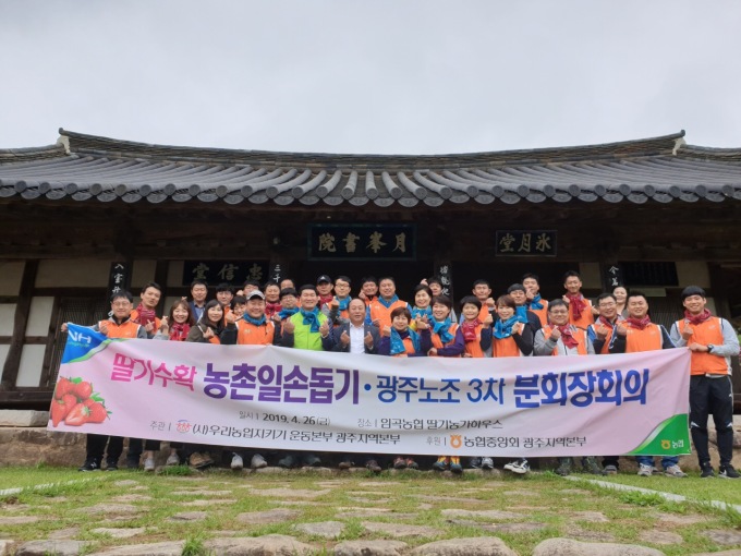[광주=뉴스핌] 조준성 기자 = 전국금융산업노동조합 NH농협지부 광주지역본부와 우리농업지키기운동 광주본부는 지난 26일 광주노조 분회장과 일반시민 40여 명이 참여한 가운데 광산구소재 딸기농가에서 딸기수확 일손돕기와 수확한 딸기 구매행사를 개최했다고 29일 밝혔다.