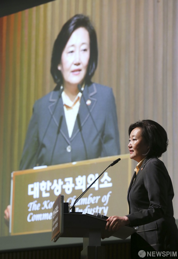 [서울=뉴스핌] 이형석 기자 = 박영선 중소벤처기업부 장관이 28일 오전 서울 중구 대한상공회의소에서 열린 초청 간담회에서 강연을 하고 있다. 2019.05.28 leehs@newspim.com