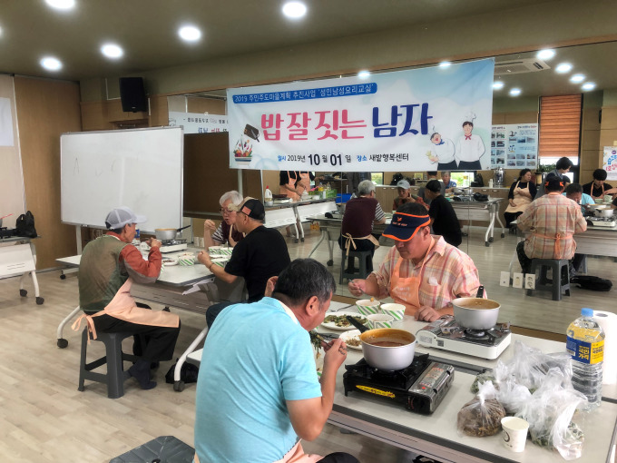 | 부산 사상구 학장동 주민주도 마을계획단이 운영하고 있는 ‘밥 잘 짓는 남자’ 프로그램 모습. [사진=사상구청] 2019.10.7. |