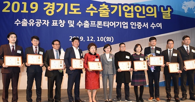 | [의정부=뉴스핌] 김칠호 기자 = 10일 라마다프라자수원 호텔에서 열린 '2019 경기도 수출기업인의 날' 행사에서 이화순 경기도 행정2부지사(가운데)가 수상자들과 기념사진을 찍고 있다 [사진=경기도] 2019.12.10 kchh125@newspim.com |