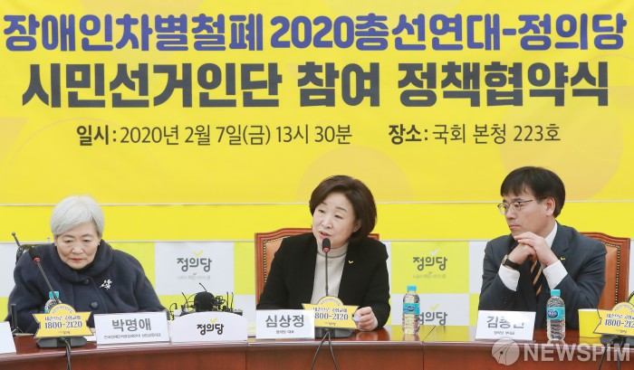 [서울=뉴스핌] 이형석 기자 = 심상정 정의당 대표가 7일 오후 서울 여의도 국회에서 열린 2020총선연대-정의당 시민선거인단 참여 정책협약식에서 모두발언을 하고 있다. 2020.02.07 leehs@newspim.com