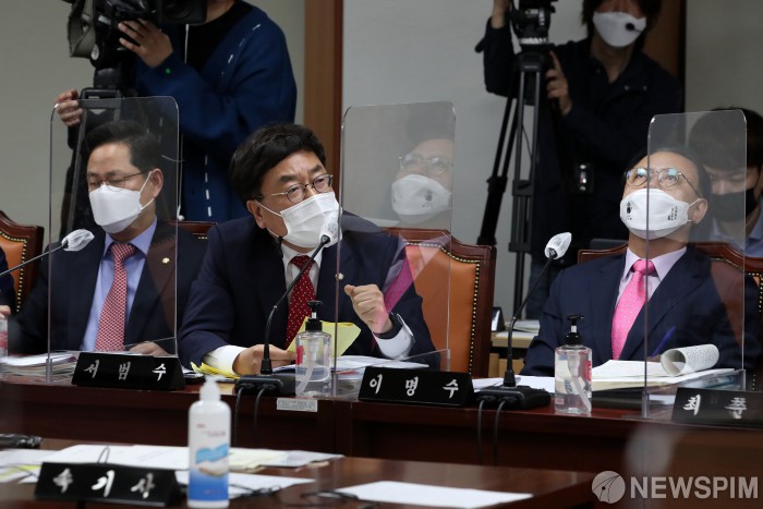 [서울=뉴스핌] 김학선 기자 = 8일 오전 서울 서대문구 경찰청에서 열린 국회 행정안전위원회 경찰청 국정감사에서 서범수 국민의힘 의원이 질의하고 있다. 2020.10.08 yooksa@newspim.com
