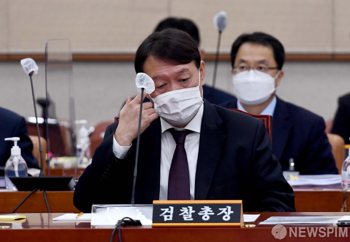 [서울=뉴스핌] 이한결 기자 = 윤석열 검찰총장이 22일 서울 여의도 국회에서 열린 법제사법위원회의 대검찰청에 대한 국정감사에 출석해 얼굴을 만지고 있다. 2020.10.22 alwaysame@newspim.com