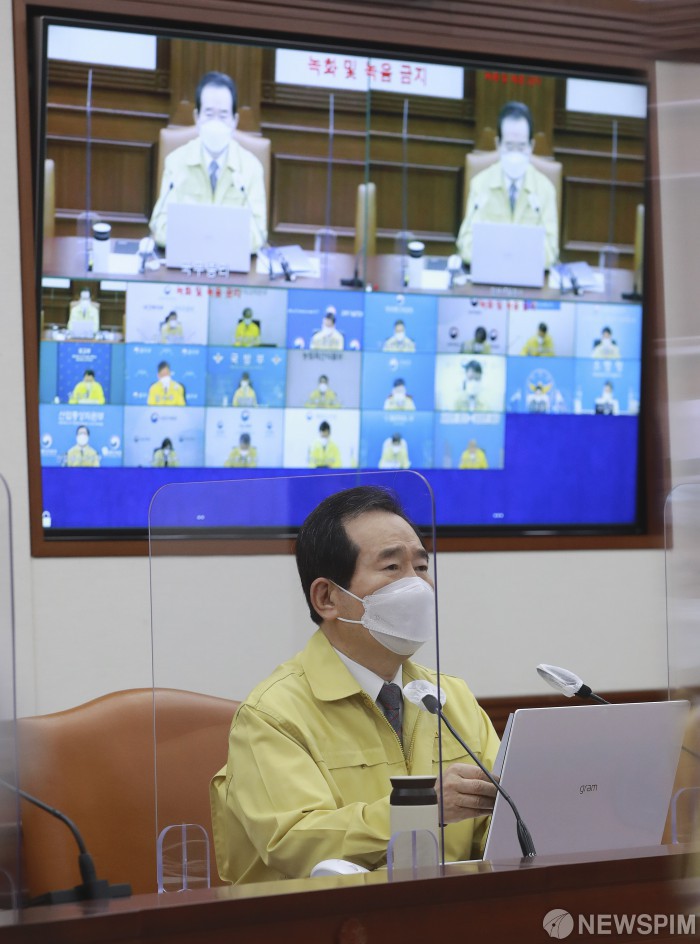 [서울=뉴스핌] 이형석 기자 = 정세균 국무총리가 16일 오전 서울 종로구 정부서울청사에서 열린 코로나19 대응 중대본회의에서 모두발언을 하고 있다. 2021.03.16 leehs@newspim.com