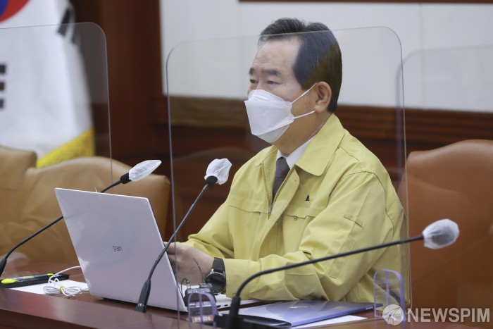 [서울=뉴스핌] 이형석 기자 = 정세균 국무총리가 16일 오전 서울 종로구 정부서울청사에서 열린 코로나19 대응 중대본회의에서 모두발언을 하고 있다. 2021.03.16 leehs@newspim.com