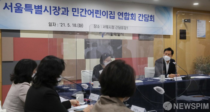 [서울=뉴스핌] 최상수 기자 = 오세훈 서울시장이 18일 오후 서울 중구 서울시청에서 열린 민간어린이집 연합회 간담회에서 모두발언을 하고 있다. 2021.05.18 kilroy023@newspim.com