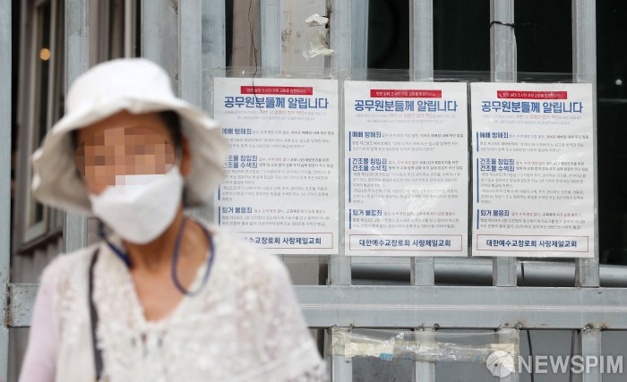[서울=뉴스핌] 정일구 기자 = 서울시가 코로나19 방역수칙을 수차례 위반하고 대면예배를 강행한 성북구 사랑제일교회에 대해 시설 폐쇄를 결정했다. 사랑제일교회는 사회적 거리두기 4단계 조치가 시행된 이후에도 5주 연속 대면예배를 강행하며 감병병예방법을 위반한 상태다. 사진은 20일 오전 서울 성북구 사랑제일교회 모습. 2021.08.20 mironj19@newspim.com