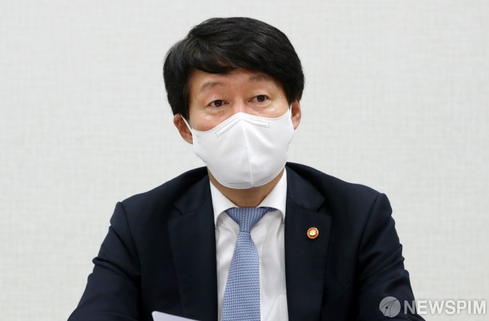 [서울=뉴스핌] 정일구 기자 = 안경덕 고용노동부 장관이 25일 오후 서울 영등포구 방송정보국제교육원 신관에서 열린 자율·성과 중심의 훈련 혁신을 위한 직업훈련기관 간담회에서 모두발언을 하고 있다. 2021.08.25 mironj19@newspim.com
