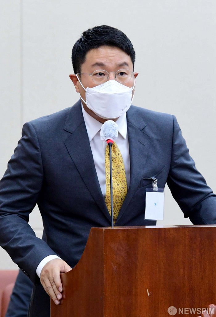 [서울=뉴스핌] 최상수 기자 = 5일 서울 여의도 국회에서 열린 과학기술정보방송통신위원회의 방송통신위원회 등에 대한 국정감사에서 윤구 애플코리아 대표가 의원 질의에 답하고 있다. 2021.10.05 kilroy023@newspim.com