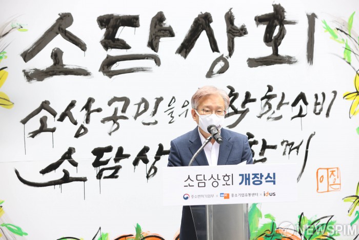 [서울=뉴스핌]권칠승 중소벤처기업부 장관이 15일 서울 인사동 쌈지길에서 열린 소상공인 플래그십 스토어 개장행사에서 축사하고 있다. [사진=중소벤처기업부] 2021.10.15 photo@newspim.com