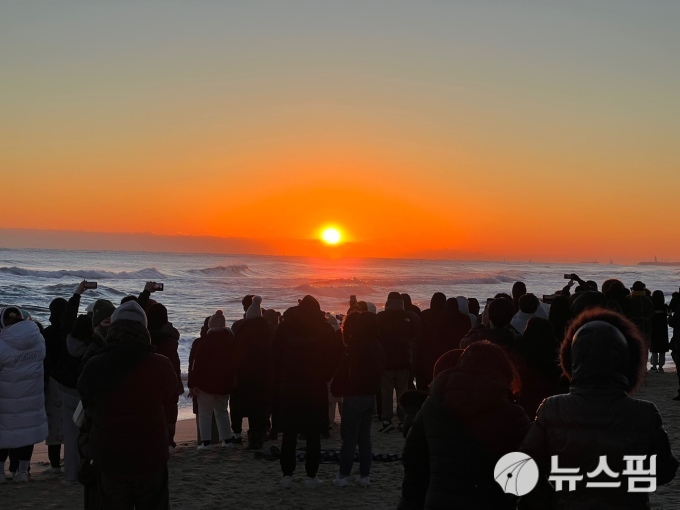 [강릉=뉴스핌] 이순철 기자 = 강원 동해안 해맞이를 위해 개방된 해변은 인파로 인산인해를 이뤘다. 특히 일출 명소인 강릉 경포해변과 정동진 해변은 길목마다 차량으로 넘쳐났다.