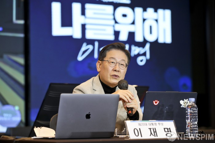 [서울=뉴스핌] 최상수 기자 = 이재명 더불어민주당 대선 후보가 11일 오후 서울 영등포구 중소기업중앙회관에서 열린 디지털·혁신 대전환위원회 정책 1호 발표회에서 발언하고 있다. 2022.01.11 kilroy023@newspim.com