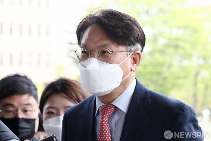 [과천=뉴스핌] 정일구 기자 = 김관정 수원고검장이 21일 오후 '검수완박' 논의를 위한 박범계 법무부 장관 주재 전국 고검장 회의 참석을 위해 경기 과천시 법무부 청사로 들어서고 있다. 2022.04.21 mironj19@newspim.com