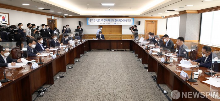 [서울=뉴스핌] 정일구 기자 = 이복현 금융감독원장이 7일 오전 서울 중구 은행연합회에서 열린 중소기업·소상공인 차주 연착륙 지원을 위한 금융감독원장-금융권 간담회에서 모두발언을 하고 있다. 이날 간담회에는 은행연합회 등 금융협회장과 상호금융중앙회장, KB국민·신한·우리·하나·NH농협 5대 은행장 등이 참석했다. 2022.09.06 mironj19@newspim.com