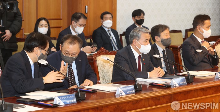 [서울=뉴스핌] 김학선 기자 = 이상률 한국항공우주연구원 원장과 신현우 한화에어로스페이스 사장이 21일 서울 종로구 정부서울청사에서 열린 국가우주위원회에 참석해 대화하고 있다. 2022.12.21 yooksa@newspim.com