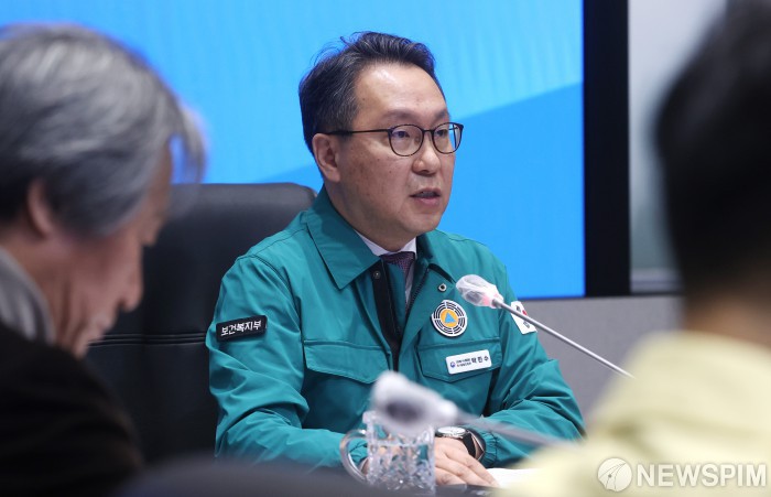 [서울=뉴스핌] 김학선 기자 = 박민수 중앙재난안전대책본부 제1총괄조정관(보건복지부 제2차관)이 8일 서울 종로구 정부서울청사 행정안전부 서울상황센터에서 열린 코로나19 중대본 회의를 주재하며 발언하고 있다. 중대본은 이날 "두 달 전 하루 9만 명 가까이 발생했던 확진자가 1만 명대까지 떨어졌다"며 "지난주 일평균 확진자는 1만6천 명대로 6주 연속 감소했고, 감염재생산지수는 0.90으로 5주 연속 1 아래"라고 밝혔다. 2023.02.08 yooksa@newspim.com