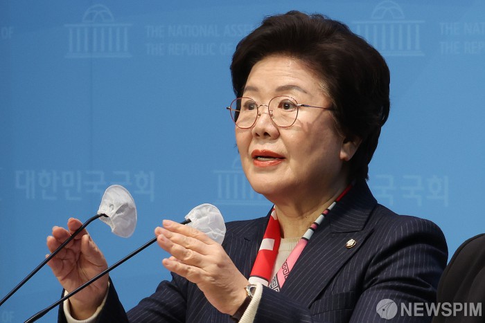 [서울=뉴스핌] 이형석 기자 = 서정숙 국민의힘 의원이 29일 오전 서울 여의도 국회 소통관에서 공천 관련 입장발표 기자회견을 하고 있다. 2024.02.29 leehs@newspim.com