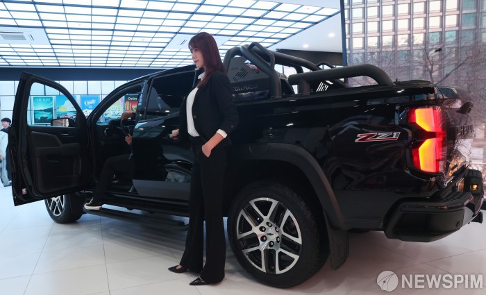 [서울=뉴스핌] 이호형 기자 = GM, 올 뉴 콜로라도 신차발표회가 18일 오전 서울시 강남구 더하우스오브지엠에서 열린 가운데 모델들이 포토 세션을 펼치고 있다. 2024.07.18 leemario@newspim.com