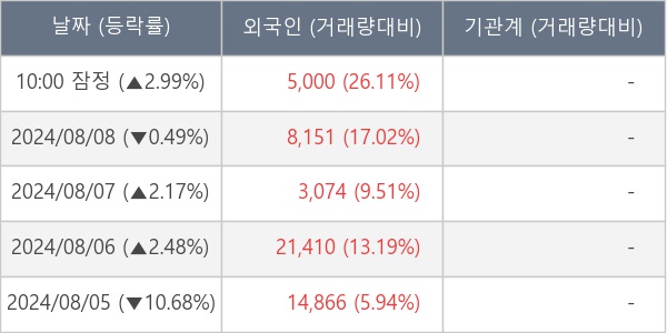 [표] 외국인ㆍ기관 순매매량 (단위 주)
