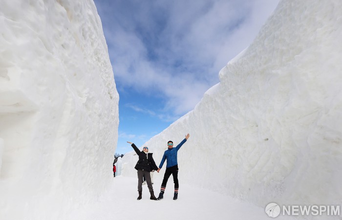 [서울=뉴스핌] 2일 오후 휴일을 맞아 강원도 평창군 대관령면 송천 일원에서 열린 '제31회 대관령 눈꽃축제'를 찾은 방문객들이 6미터 높이의 대관령루트에서 축제를 즐기고 있다. [사진=평창군청] 2025.02.02 yym58@newspim.com