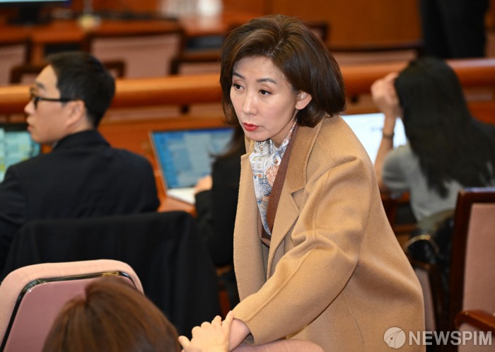 [서울=뉴스핌] 사진공동취재단 = 나경원 국민의힘 의원이 25일 서울 종로구 헌법재판소 대심판정에서 열린 윤석열 대통령 탄핵심판 최종 변론에 방청객으로 입장하고 있다. 2025.02.25 photo@newspim.com
