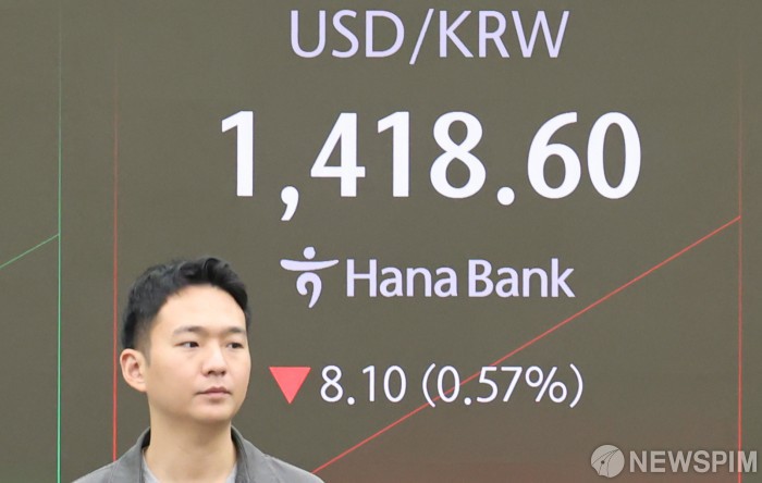 [서울=뉴스핌] 양윤모 기자 = 뉴욕증시의 3대 주가지수가 급락한 가운데 17일 오전 코스피 지수가 전 거래일 종가보다 7.54포인트(0.31%) 오른 2,454.97로, 코스닥 지수는 3.74포인트(0.53%) 오른 702.85로 거래를 시작했다. 서울 외환시장에서 원/달러 환율은 전 거래일보다 8.10원 내린 1,418.60원에 거래되는 가운데, 서울 중구 하나은행 딜링룸에서 직원들이 업무를 보고 있다. 2025.04.17 yym58@newspim.com