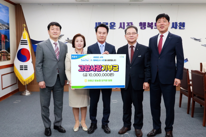 사천시는 NH농협 지역 임직원 6명이 사천시청을 방문해 의령군 관내 농협 임직원들이 모금한 고향사랑기부금 1000만 원을 전달했다고 23일 밝혔다.