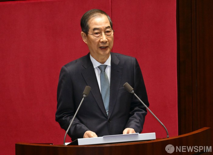 [세종=뉴스핌] 양가희 기자 = 한덕수 대통령 권한대행 국무총리는 24일 국회에서 추가경정예산(추경)안 관련 시정연설을 갖고 "위기 대응에는 정책의 내용만큼이나 이를 추진하는 타이밍 또한 너무도 중요하다"며 조속한 의결을 요청했다.