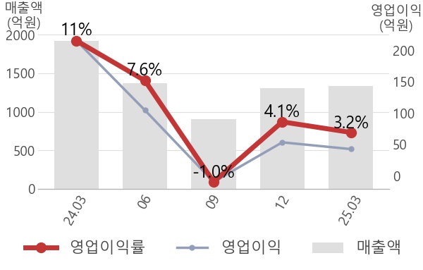 ◆ 1Q 실적, 영업이익 42.7억원 전년동기 대비 80% 감소... 매출액 30% 감소