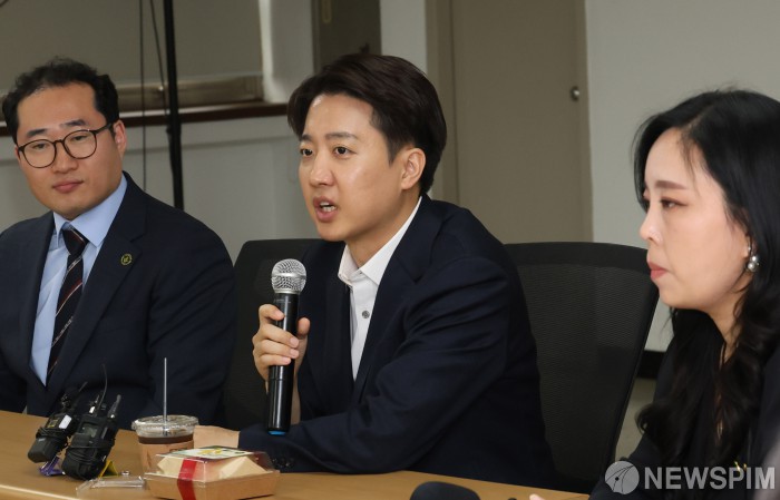 [서울=뉴스핌] 양윤모 기자 = 이준석 개혁신당 제21대 대통령선거 후보가 15일 오후 서울역 공간모아 8홀에서 열린 대한초등교사협회 스승의날 기념 간담회에 참석 모두 발언을 하고 있다. 2025.05.15 yym58@newspim.com