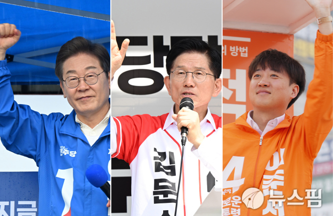 1강 체제를 굳히려는 이재명 더불어민주당 후보는 영·호남 표심을 단단히 다지고 있다. 뒤쫓는 김문수 국민의힘 후보는 텃밭인 영남 방어전에 나선 후 보폭을 짧게 가져가며 수도권과 충청, 호남을 빠르게 훑고 있다. 40대 대통령을 내세운 이준석 개혁신당 후보는 '동에 번쩍 서에 번쩍'하는 모습으로 지역별 대학교를 방문하며 차별된 행보를 보이고 있다.