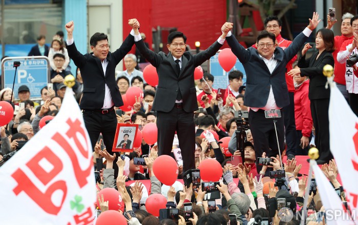 [구미=뉴스핌] 정일구 기자 = 김문수 국민의힘 대선 후보가 24일 오후 오후 경북 구미시 박정희 전 대통령 생가 앞에서 열린 "대한민국 기적의 시작" 구미시 집중유세에서 시민들에게 인사하고 있다. 2025.05.24 mironj19@newspim.com