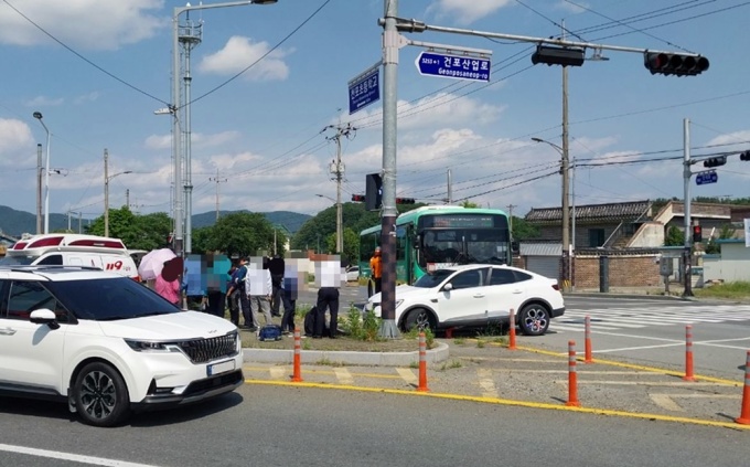 26일 경북소방본부에 따르면 전날 오후 2시23분쯤 경주시 건천읍 천포리 천포삼거리에서 시내버스와 좌회전하던 승용차량이 충돌했다.