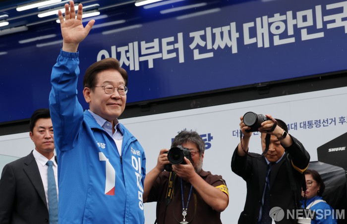 [서울=뉴스핌] 정일구 기자 =이재명 더불어민주당 대선 후보가 제21대 대통령 선거를 하루 앞둔 2일 서울 강북구 북서울꿈의숲 서문광장에서 열린 강북구·성북구·도봉구·노원구 유세에서 연설한 뒤 인사하고 있다.2025.06.02 mironj19@newspim.com