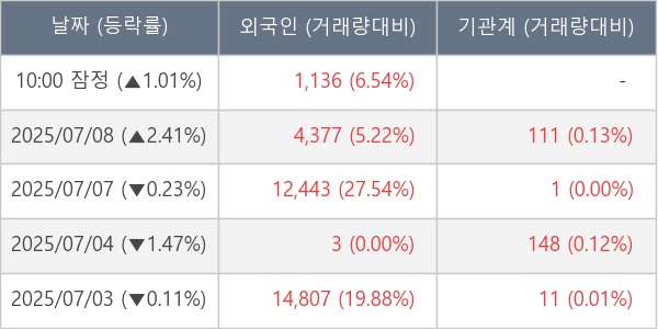 [표] 외국인ㆍ기관 순매매량 (단위 주)