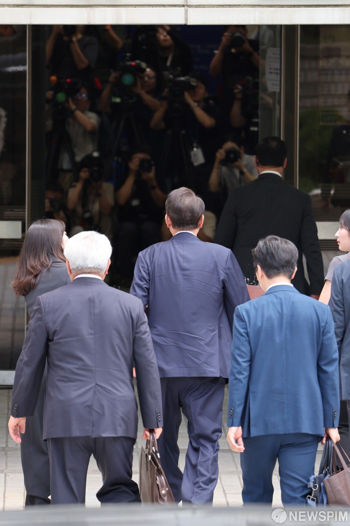 [서울=뉴스핌] 사진공동취재단 = 12·3 비상계엄과 관련해 특검의 수사를 받는 윤석열 전 대통령이 9일 오후 서울 서초구 서울중앙지방법원에서 열린 구속 전 피의자 심문(영장실질심사)에 출석하고 있다. 2025.07.09 photo@newspim.com