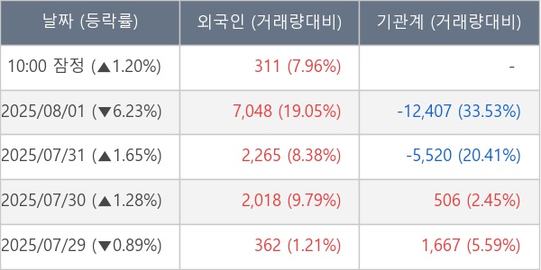 [표] 외국인ㆍ기관 순매매량 (단위 주)