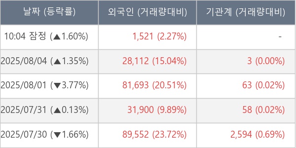 [표] 외국인ㆍ기관 순매매량 (단위 주)