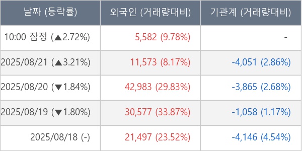 [표] 외국인ㆍ기관 순매매량 (단위 주)