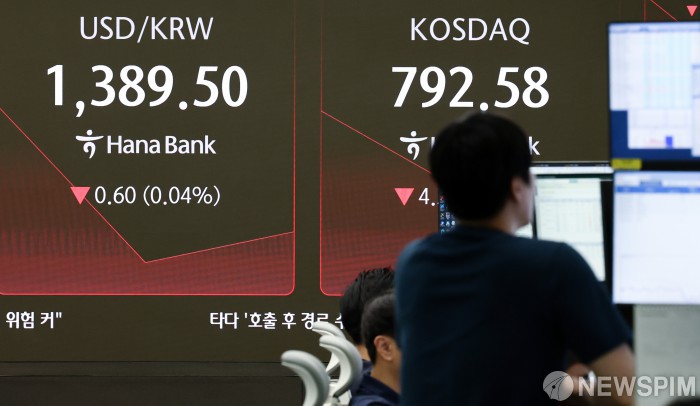 [서울=뉴스핌] 최지환 기자 = 1일 코스피가 21.43포인트(0.67%) 하락한 3152.81에 출발했다. 코스닥지수는 전 거래일보다 1.61포인트(0.20%) 내린 795.30에 거래를 시작했다. 서울 외환시장에서 달러/원 환율은 0.1원 내린1390.0원에 출발했다. 이날 오전 서울 중구 하나은행 딜링룸에서 딜러들이 업무를 보고 있다. 2025.09.01 choipix16@newspim.com