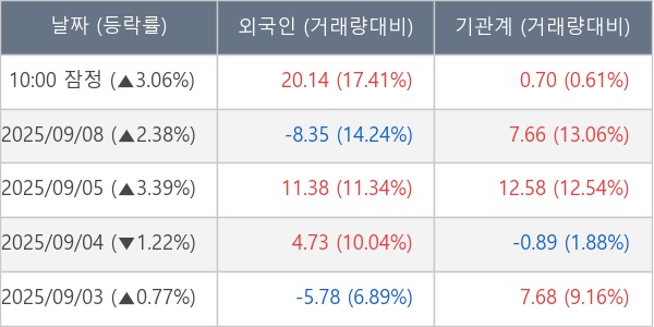 [장중수급포착] 코리아에프티, 외국인/기관 동시 순매수… 주가 +3.06%
