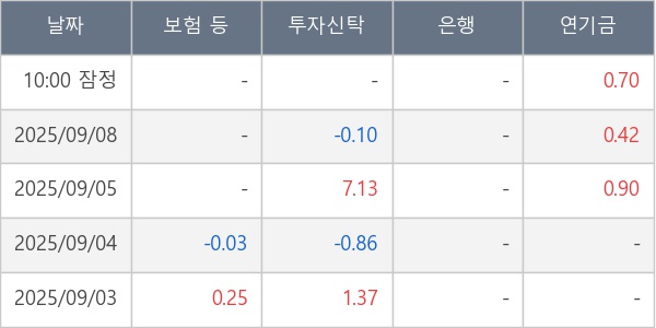 [표] 주요 기관별 순매매량 (단위 만주)